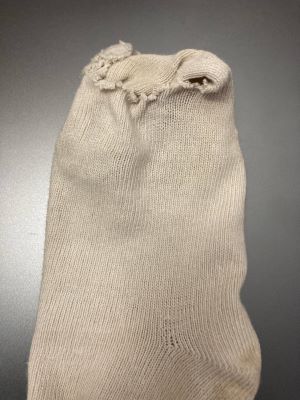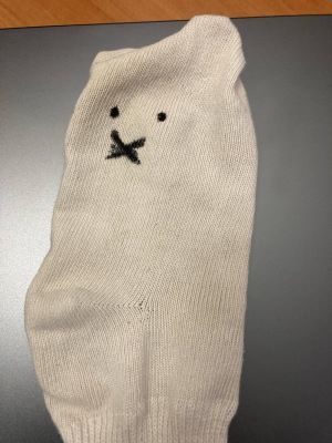 After the glue had dried on the water bottle, put the sock over. Make adjustments if needed.